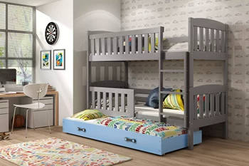 Lit ado superposé 3 places Jacquot 90X190 avec matelas et tiroir, gris/bleu