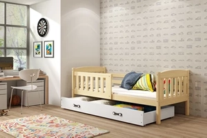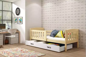 Lit ado simple Jacquot 80X190 avec matelas et tiroir, pin/blanc