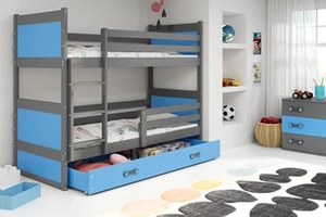 Lit ado superposé 3 places Rico 90X190 avec matelas et tiroir, gris/bleu