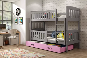 Lit ado superposé Rico 90X200 avec tiroir, pin/gris