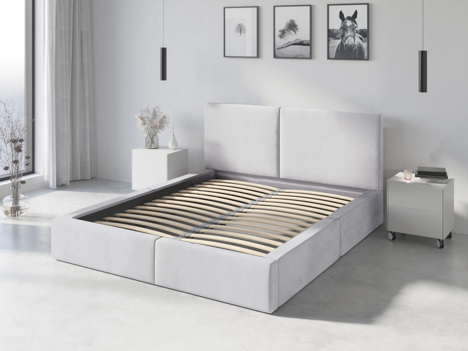 - La structure du lit est en panneau stratifié de haute qualité, caractérisé par sa durabilité et sa facilité de nettoyage. La tete de lit et cadre sont rembourrés ce que rend ce lit particulierement confortable. Matériau de rembourrage se caractérise par une structure délicate et une surface recouverte d'un fin duvet, résistant a l'abrasion, au pelage et a la lumiere. Le matériau a les propriétés d'une absorption limitée des fluides, ce qui a un effet positif sur sa propreté.